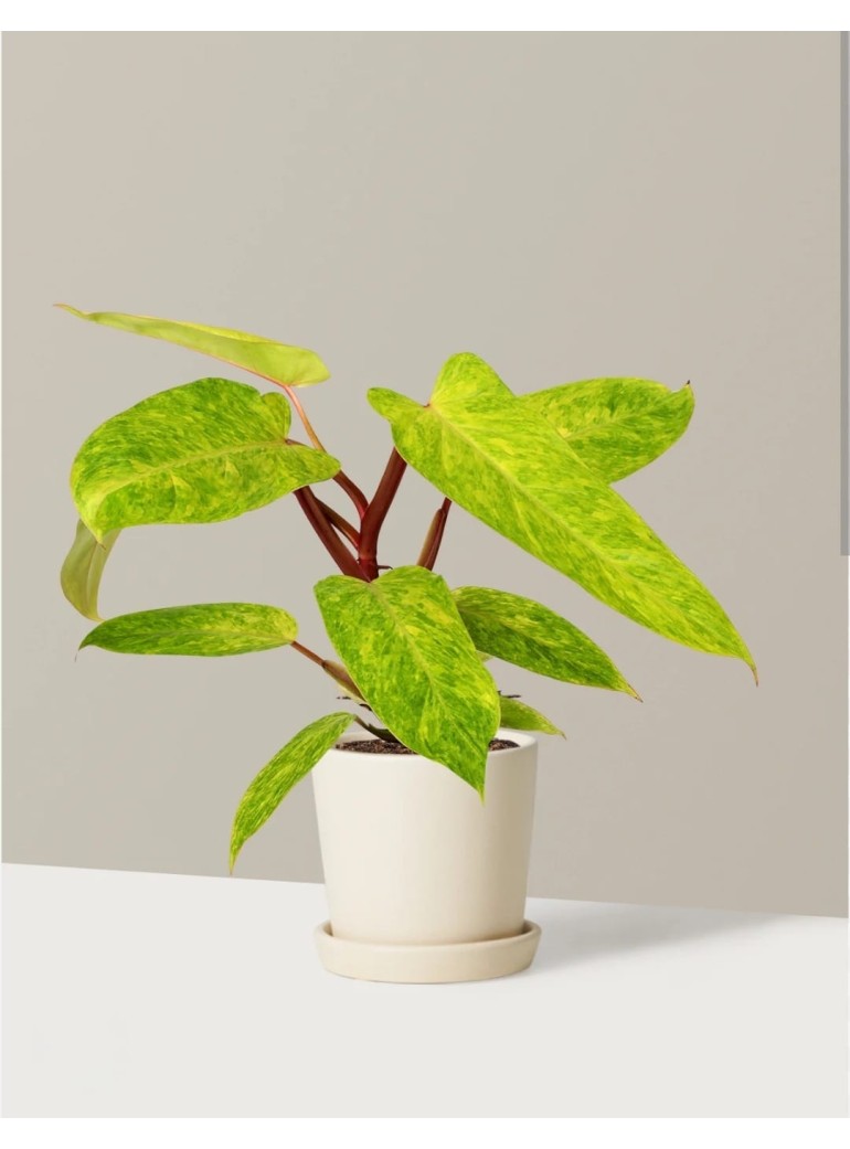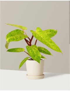 El Philodendron Painted Lady deslumbra con sus hojas moteadas en tonos verde lima y amarillo brillante, que se intensifican con la luz. Es una joya tropical vibrante y fácil de cuidar, perfecta para dar color y vida a cualquier rincón.